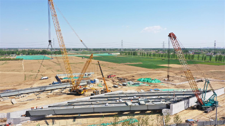 雄安新区北部郊野公园市政道路钢箱梁首架成功
